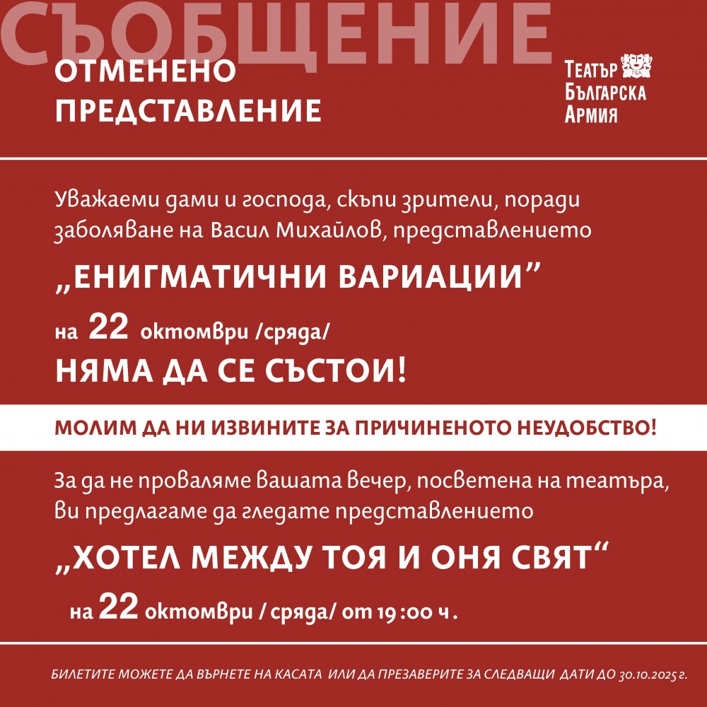 БИЛЕТИТЕ МОЖЕТЕ ДА ВЪРНЕТЕ НА КАСАТА