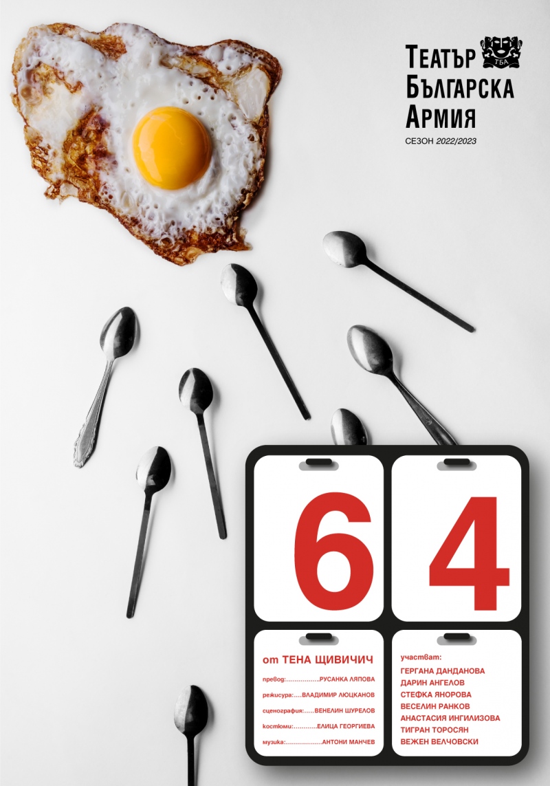 Това е постановката „64“ и да правилно прочетохте. Не е 69 и никак не е секси, да правиш секс по график, без любов, но с фикс идея.Пиесата „64“ илюстрира колко трудно е да разберем дали и кога сме готови, желаещи и способни да станем родители. Какво се случва, когато имаме нужда от помощ не само от медицински специалисти, но и от нашето семейство и приятели, без чиято подкрепа процесът може да бъде непоносим?! И все пак, дори когато нашият вътрешен кръг прави най-доброто, на което е способен, преживяването винаги е самотно, дори в любящо партньорство, дори с най-добрите намерения на тези, които ни заобикалят.